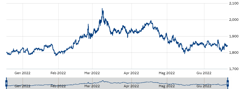 In seguito ai lockdown cinesi, le vendite di gioielli hanno registrato un ribasso del 30% anno su anno (fonte: milanofinanza.it), impattando sulla domanda spot di oro. In questo contesto, inoltre, la Banca Centrale Cinese è intervenuta per alleggerire le condizioni finanziarie, permettendo un deprezzamento del renminbi: con la caduta di questo, il prezzo del metallo giallo è andato ancora più giù.