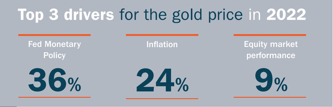 Nel sondaggio sono riportate testimonianze di più analisti circa le prospettive di andamento dell’oro nel 2022. È quindi possibile identificare tre principali fattori trainanti il prezzo: