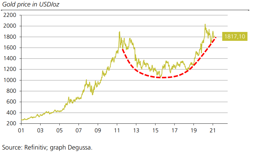È risaputo che l’oro risponde al calo dei tassi di interesse reali (rendimento obbligazionario meno inflazione). In questi casi, generalmente è meglio possedere oro che avere contanti in banca. I tassi reali sono diminuiti alla fine del 2018, quando è iniziato l’ultimo grande rally dell’oro. Il rally si è interrotto bruscamente un anno fa, proprio quando i tassi di interesse reali a lungo termine hanno smesso di scendere. Per questo l’oro potrebbe essere sottovalutato. Nella visione di Morris il “valore equo” è posto vicino ai 2.000 $ , contro gli attuali 1.800 $.